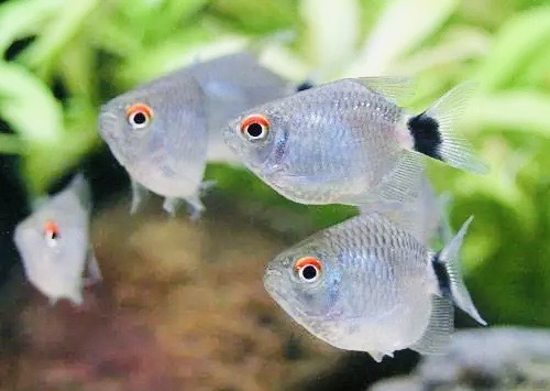 青い光沢と黒い体色のコントラストが美しい小型熱帯魚で、ネオンテトラよりもシックな魚種です。 水草の緑の中でキラキラと光るため、水草水槽の定番魚種としても人気があります。 -