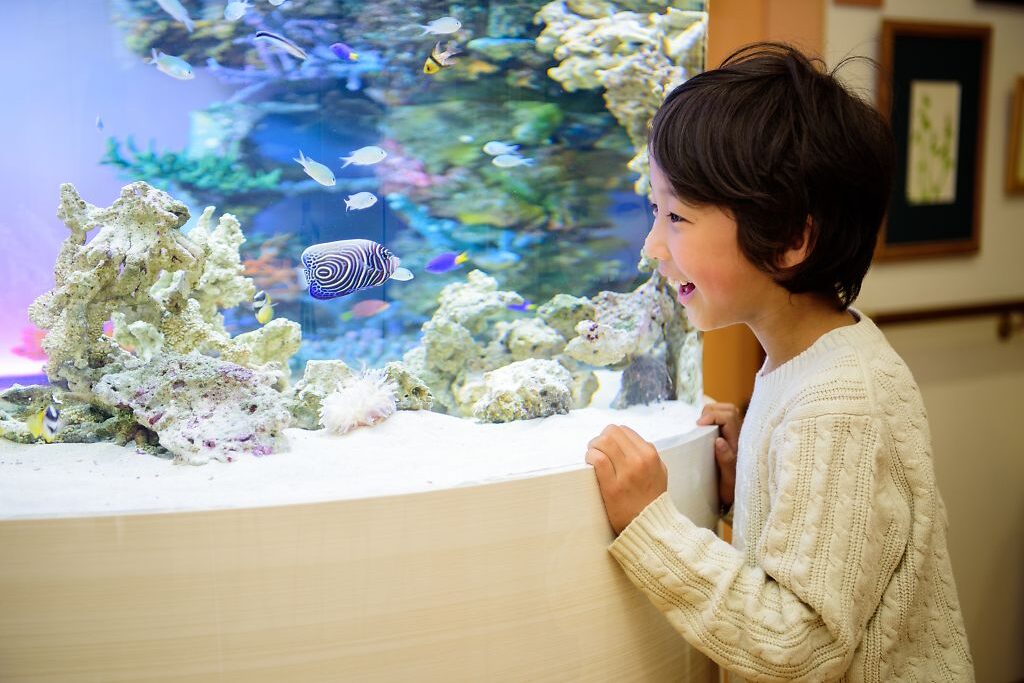 歯医者が苦手な子どもはとても多いものです。しかし、待合室にアクアリウムがあると子どもたちは自然と水槽に興味を持ちます。例えば、