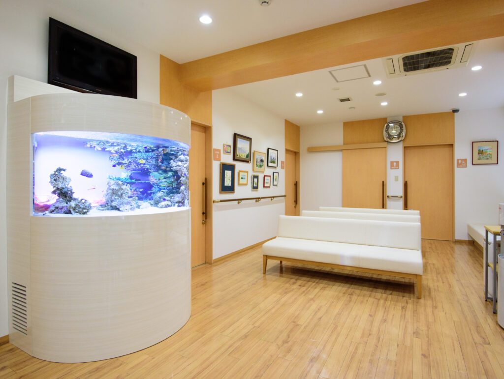 歯科医院では、お子さま連れの患者様への配慮も欠かせません。待合室にアクアリウムがあることで、子どもたちは魚に興味を持ち、「歯医者=怖い場所」という意識がやわらぎます。