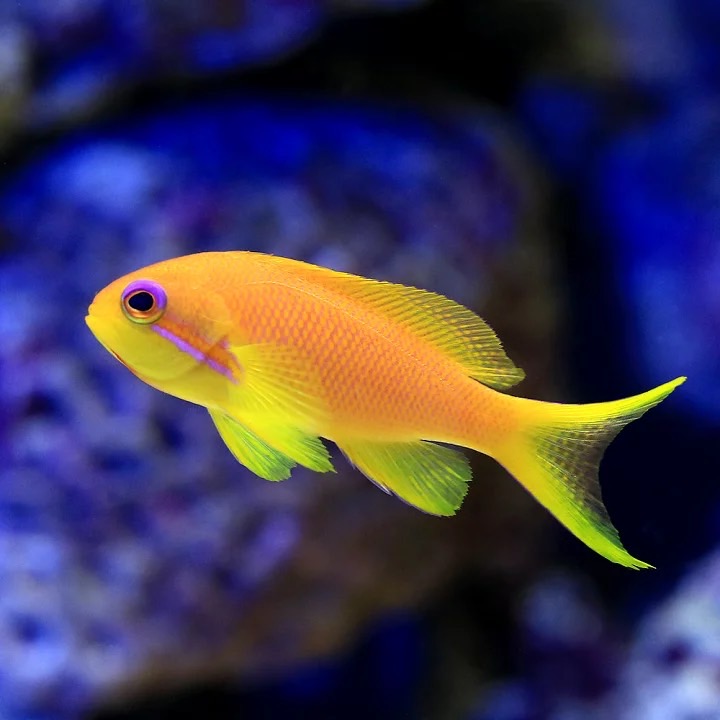 鮮やかな青色に黒い模様と黄色い尾びれが美しく、とても人気のある海水魚です。夜… -