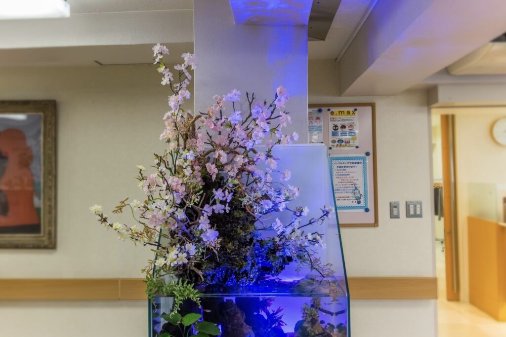 待つ時間も、診察後の余韻も。水槽のある空間は、病院全体のイメージを“ただの治療の場”から“人に優しい場所”へと変えてくれます。水槽を設置している医療施設は、“心を配ってくれる場所”として認識されるようになるのです。