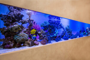 高齢者施設やグループホームでは、入居者様が毎日を穏やかに、安心して過ごせる環境づくりがとても重要です。その中で近年注目されているのが、アクアリウム(水槽)による癒しの空間づくりです。静かに揺れる水面や、ゆったりと泳ぐ魚の姿は、自然に近いリズムを生み出し、見る人の気持ちを落ち着かせてくれます。言葉を交わさなくても伝わるやさしい時間が、施設全体の雰囲気を穏やかに整えてくれます。